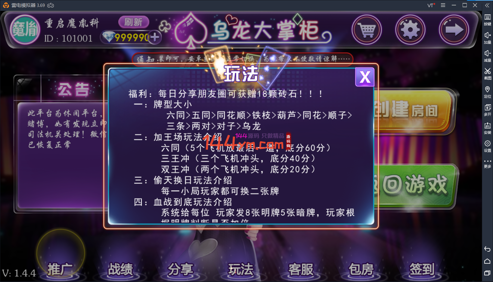 admin 房卡游戏 游戏源码 精品亲测 2020-02-21 新版乌龙大掌柜十三水 完整程序 数据库 后台代理控制 服务端 修复整理下载 新版乌龙大掌柜十三水 完整程序 数据库 后台代理控制 服务端 修复整理下载 搭建也很简单,不会搭建的看搭建视频教程就可以了 乌龙大掌柜 十三水